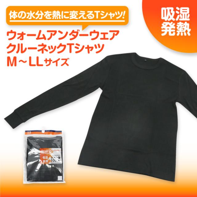 ウォームアンダーウェア あったかインナー クルーネック Tシャツ 吸湿 発熱 温かい 防寒 綿 コットン インナー 肌着 長袖 メンズ M L LL 《ts》