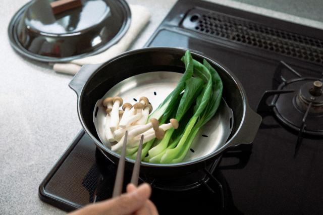 ガスレンジでの直火調理はもちろん、IH調理器、オーブン、ハロゲンヒーター、ラジエントヒーターで使えます。周辺が熱くならないIH調理器を使えば、季節を問わず快適な空間の中で鍋料理が楽しめます。別売りのスチームプレートを使うことで、美味しくてヘルシーな蒸し料理も手軽に愉しめます。