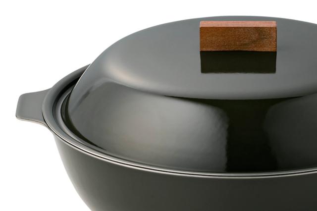 | 材質 | 本体、ふた:ステンレス銅(琺瑯加工) ふたつまみ:天然木(ウォールナット、オイル仕上げ) |