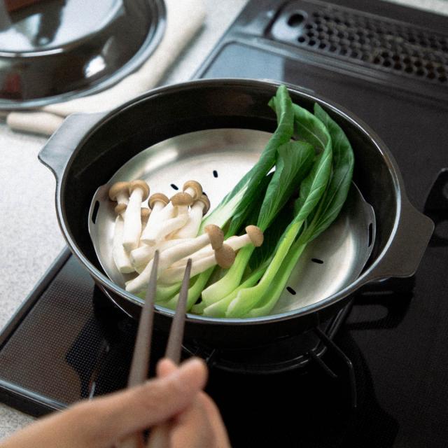 KAKOMI 琺瑯鍋 2L、KAKOMI 土鍋 2.5L用のスチームプレートです。直径25cm以上のお手持ちのフライパンや鍋でもご使用いただけます。