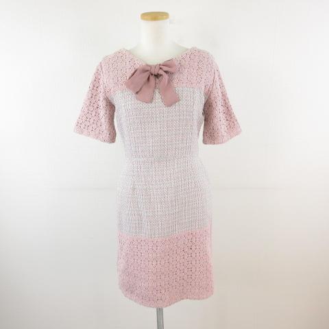 【中古】エミリアウィズ Emiria Wiz ワンピース ミニ 半袖 レース ピンク M *T731 レディース