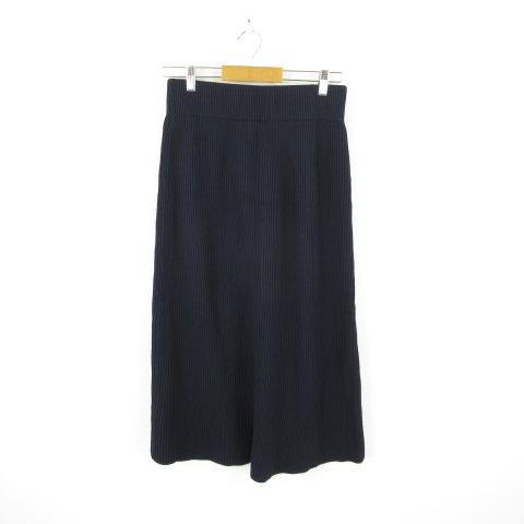 【中古】ザラ ZARA ニットスカート ミモレ丈 フレア 紺 M *T737 レディース