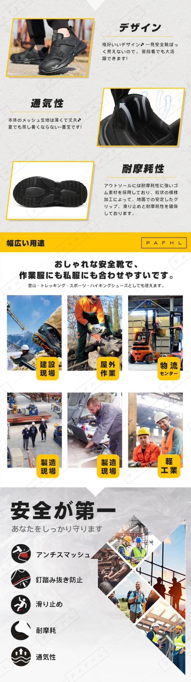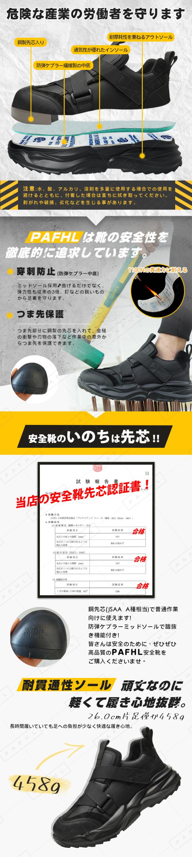 PAFHL 安全靴 あんぜん靴 作業靴 セーフティーシューズ スニーカー メンズ レディース ウォーキング シューズ 靴 鋼先芯 つま先保護 スポーツシューズ 軽量 通気 男女兼用 23.0cm-29.0cm JSAA A種相当