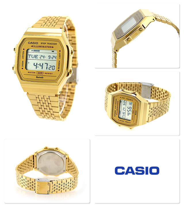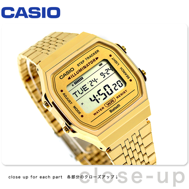 7年保証キャンペーン カシオ CASIO カシオ コレクション スタンダード クオーツ Bluetooth メンズ 腕時計 ABL-100WEG-9ADF CASIO Collection STANDARD デジタル ゴールド ◆角型フォルムのクラシックデザインに、日常で役立つ機能を備えたモデルです。デジタル液晶のシンプルなケースに、細やかな輝きを放つ多列タイプのメタルバンドを採用し、腕馴染みのよいフラットなフォルムに仕上げました。センサーが体の動きを感知し、歩数を自動的にカウント。その日の歩数を液晶画面でお知らせします。また、Bluetoothでスマートフォンと連携し、時計の時刻を自動修正。時計の設定をスマホのアプリ上で簡単に設定できます。さらに、時計で計測した歩数データなどをアプリに転送。ライフログとして日々の健康管理に役立てられます。クラシカルなデザインと便利な機能で、ヘルスコンシャスな毎日をサポートします。 国内モデル品番:ABL-100WEG-9AJF