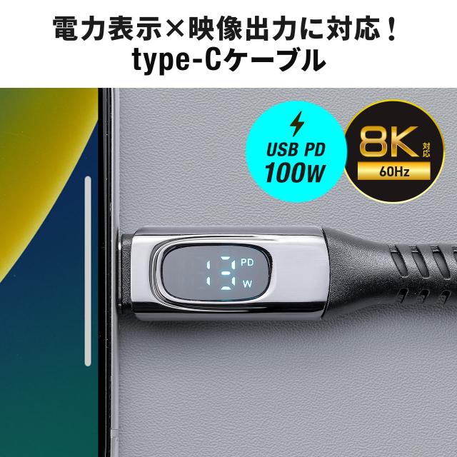 ⇒ご購入の前にご確認下さい電力表示ができ、USB20Gbpsに対応をしているType-Cケーブル。映像出力にも対応しており、最大8K60Hzまで出力可能。100Wまでの高速充電に対応。【WEB限定商品】