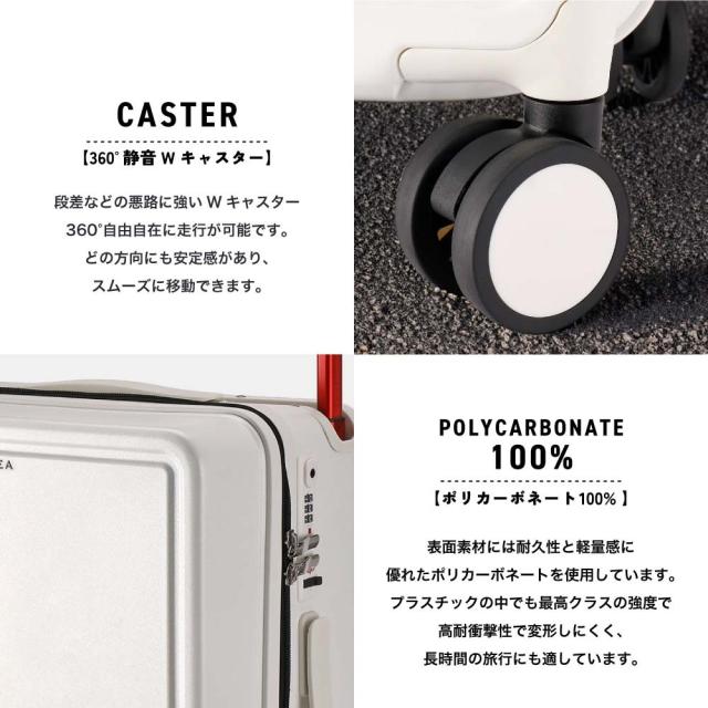 | フレームハンドルで高級感あふれる、厳選素材の高耐久スーツケース。 メイン外装はポリカーボネイト100%。ハンマーで叩いても砕けにくく、防弾材料に使用されることもあります。エンジニアリングプラスチック素材において最も耐衝撃性に優れる素材。マット加工を施した高級感のある見た目で、美しい外観を長く保ちます。ナンバーロック式なので、鍵を忘れる心配はありません。当然TSAロックに対応しております。 当商品は容量の最大化を意識したアウターフラット型のモデルです。機内持ち込みサイズで設計しております。※航空会社・飛行機種別によって若干持込ルールは異なります。 ★Pick Up Points★ ・美しさと耐久性を兼ね備えた4段階伸縮フレームハンドル ・収納品がサッと取り出せるハンディポケット ・使いやすく摩耗に強いファスナー式ボディ ・スムーズ可動の静音キャスター |