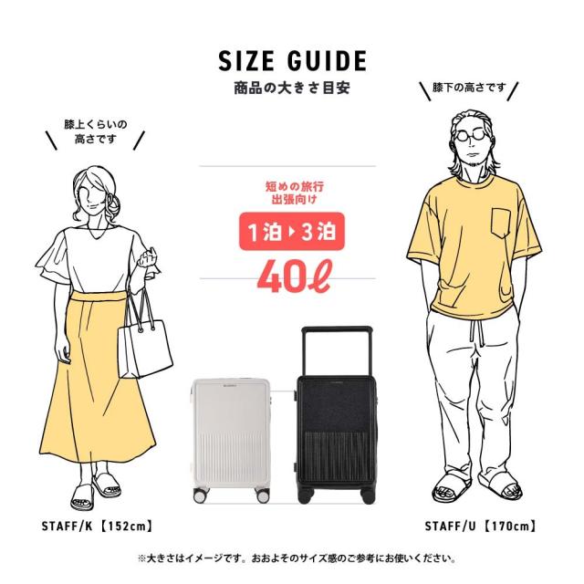 | サイズ・容量(概寸) | タテ約55cm*ヨコ約35cm*奥行約25cm・約40L |