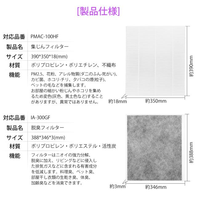 PMAC-100HF IA-300GF 空気清浄機フィルター 集じんフィルター pmac-100hf 脱臭フィルター ia-300gf アイリスオーヤマ 加湿空気清浄機(互換品/2点セット)