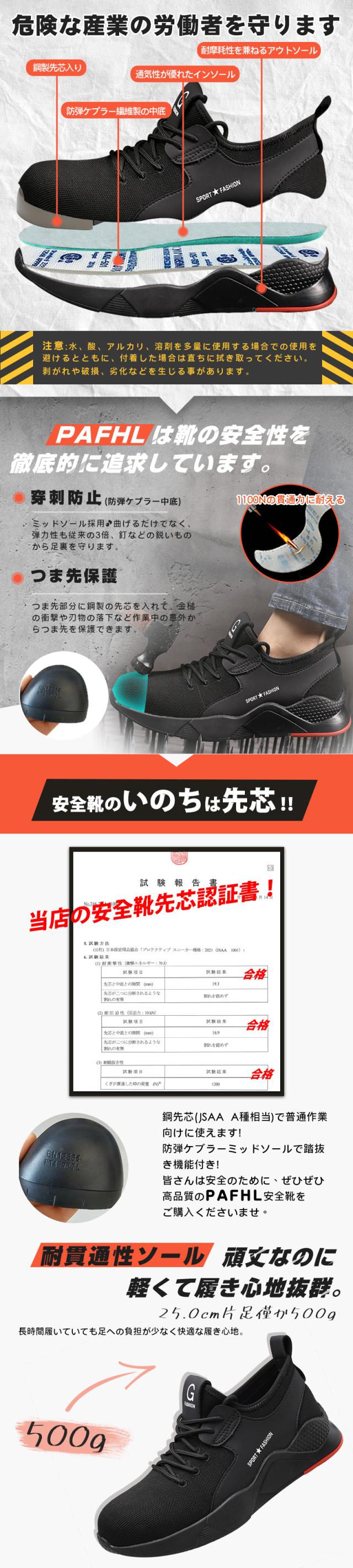 PAFHL 安全靴 作業靴 セーフティーシューズ スニーカー メンズ レディース ランニングシューズ シューズ 靴 鋼先芯 つま先保護 スポーツシューズ 耐滑 軽量 通気 滑り止 男女兼用 23.0cm-29.0cm JSAA A種相当