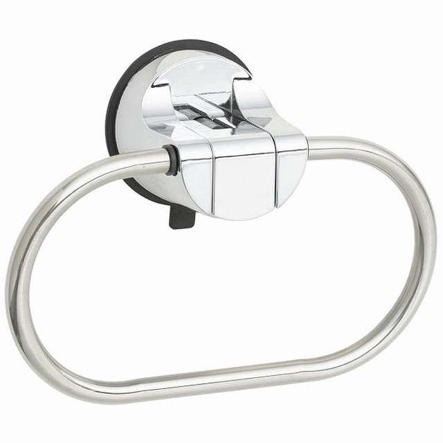 タオル掛けハンガーリング ステンレスパイプ レバー式強力吸盤タイプ 洗面所 キッチン トイレ お風呂 浴室