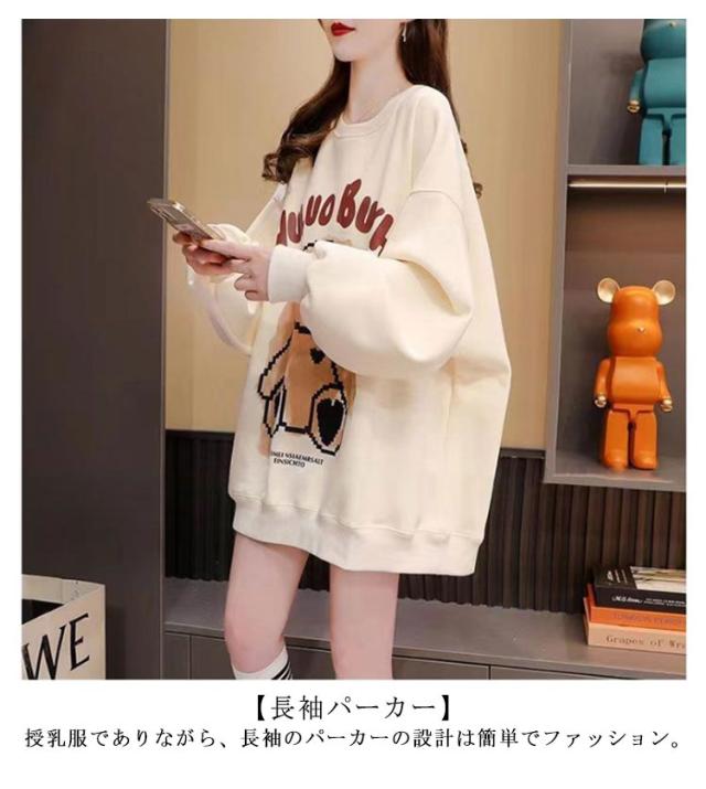 授乳服 長袖 スウェット トレーナー マタニティパーカー 授乳口付き 薄手 裏起毛 春秋冬 長袖 マタニティウェア マタニティ トップス カットソー 大きいサイズ 産後 トップス 体型カバー 妊婦さん