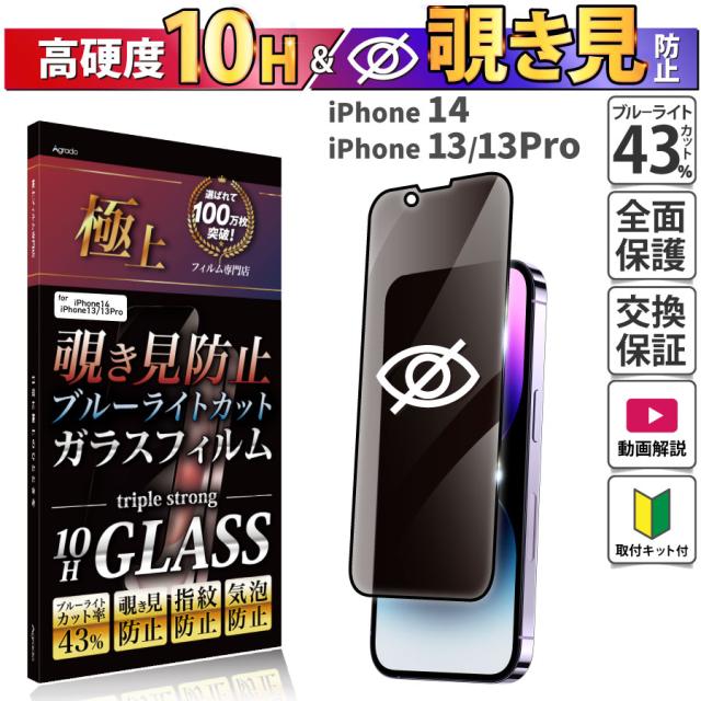 iPhone 14 / 13 Pro / 13 ガラスフィルム 覗き見防止 ブルーライトカット かんたん 安心 プライバシー 全面保護 スマホフィルム 強化ガラス のぞき見防止 保証 アイフォン アイホン おまけ付き 防水ケース ポイント消化 除き見