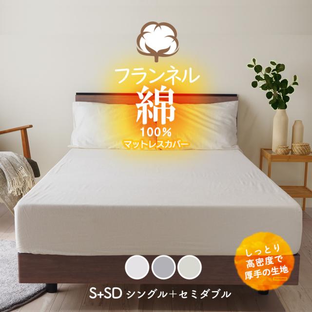 コットンフランネル 綿100% シングル+セミダブル 220×195cm 2台用サイズ ファミリーサイズ マットレスカバー ボックスシーツ G27