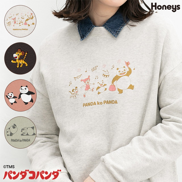 トップス スウェット 長袖 パンダコパンダ 綿 クルーネック ゆったり レディース SALE セール Honeys ハニーズ パンダコパンダ/トップス
