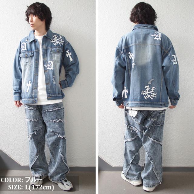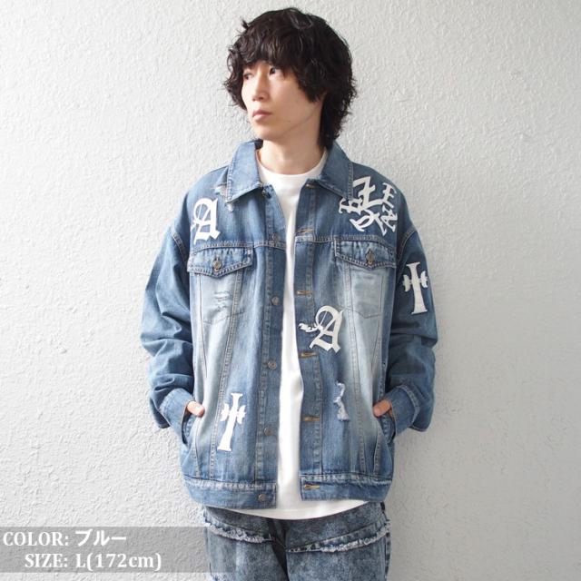 デニムジャケット メンズ Gジャン ジージャン アウター おしゃれ BIKE STAR PUワッペン付 ダメージ加工 裏原系 原宿 [300405]