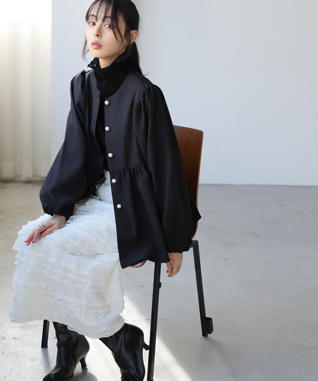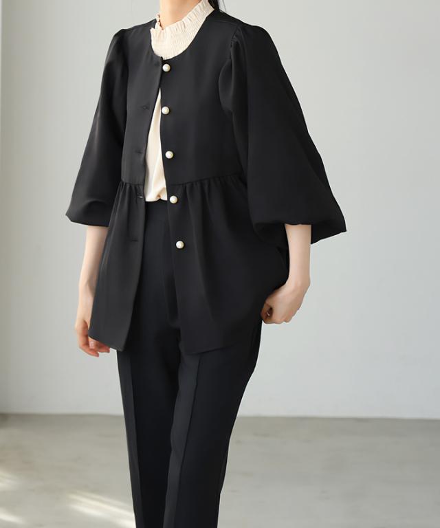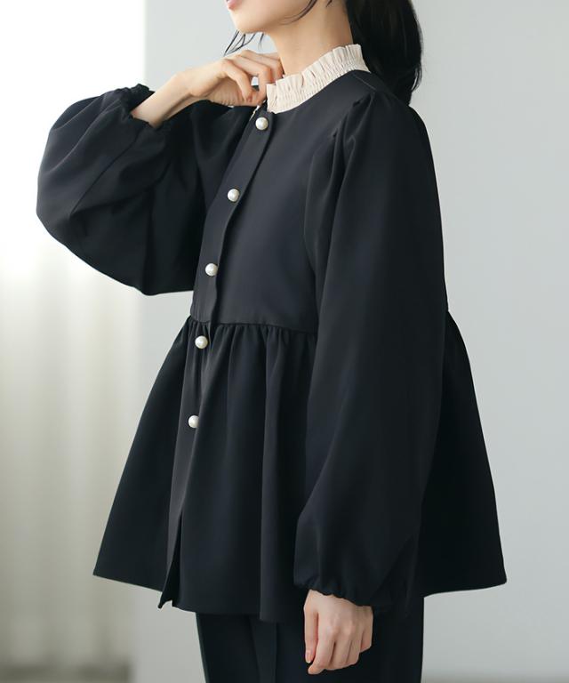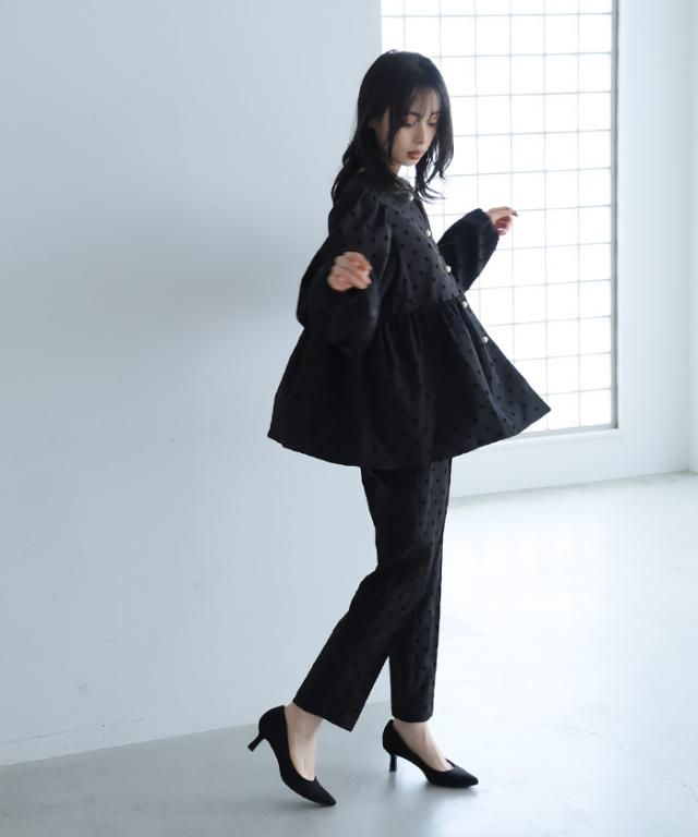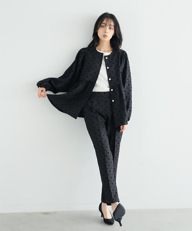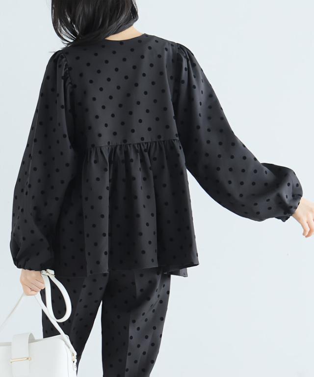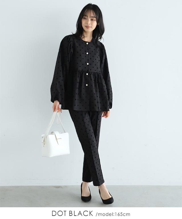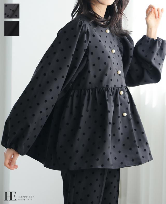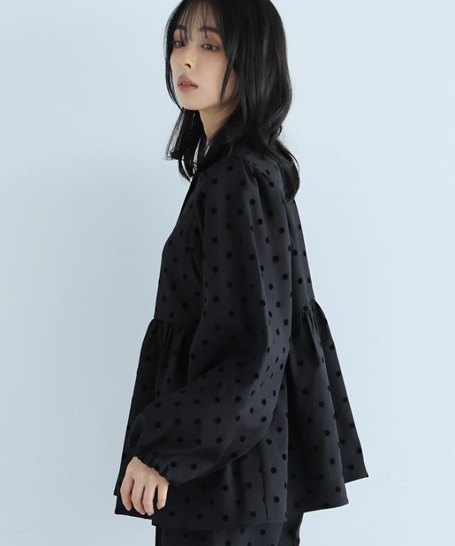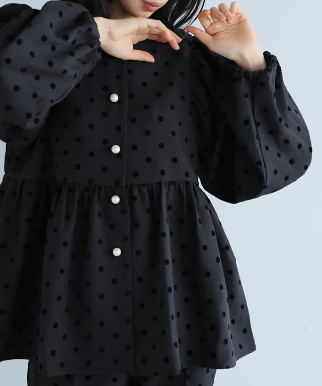 ジャケット ペプラム ドット ボリューム袖 アウター【メール便不可】