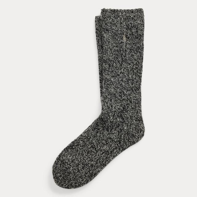 霜降りのウール混紡糸で編んだラグソックスは、シグネチャーであるポニーの刺繍入り。