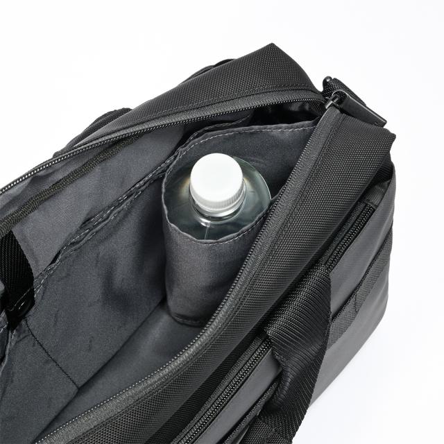 側面ファスナーと本体気室の双方から物の出し入れが可能なポケット。