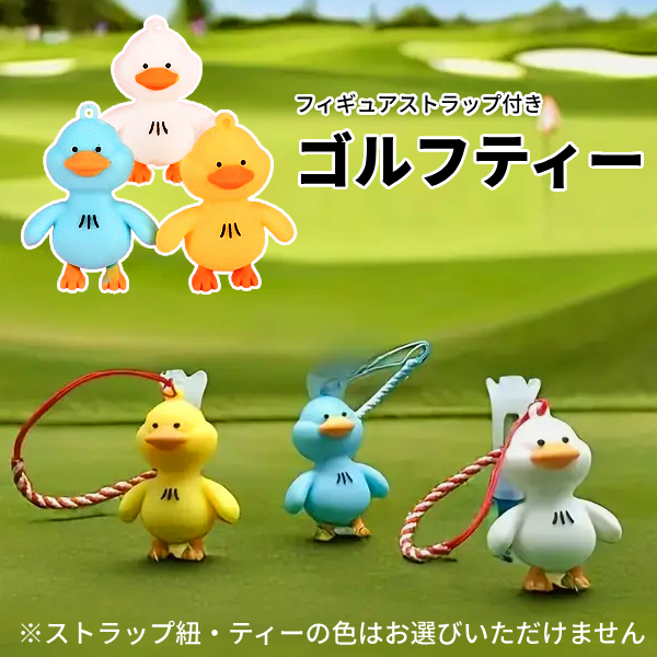 ゴルフ ティーキーパー マスコット フィギュア ストラップ付き アヒル DUCK 鳥 持ち運び チャーム ティー 紛失防止 ラウンド用品 可愛い 動物 シリコン