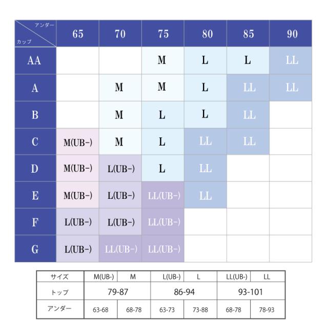 | サイズ | LL(UB-)サイズ (トップ93-101cm、アンダ68-78cm)、