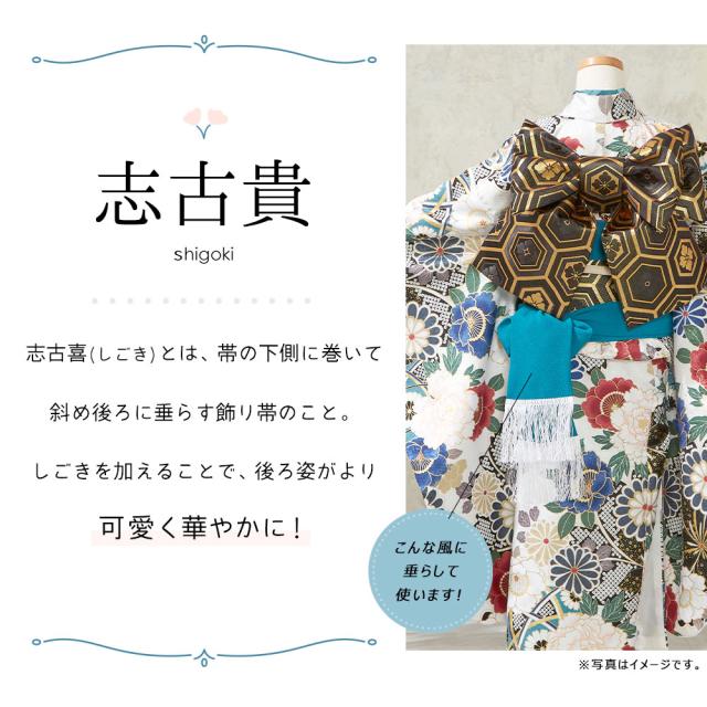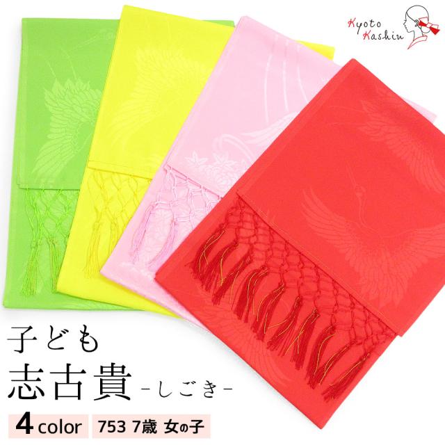 【1枚までメール便発送OK】七五三 しごき 志古貴 帯飾り 7歳 女の子 四つ身 4色 赤 ピンク 黄 緑 グリーン 地紋 お洒落 可愛い 和装 着付け 小物 753 子供 キッズ 女の子 着物 結婚式 礼装 お祝い 正月 雛祭り