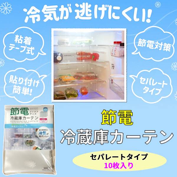 安い 冷蔵庫カーテン 節電 節約 取り付け簡単 冷蔵室 キッチン 電気代 エコ 雪の結晶 柄 半透明 粘着テープ カット セパレート 10枚入り
