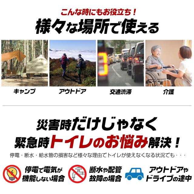 そしてアウトドアや渋滞時など緊急時のトイレの心配を解決します。