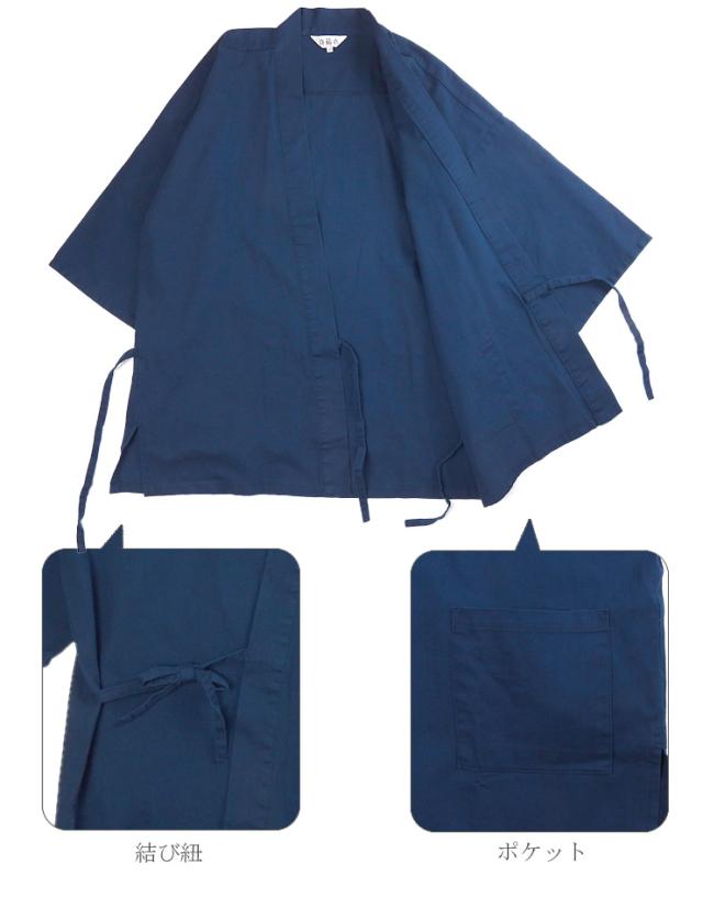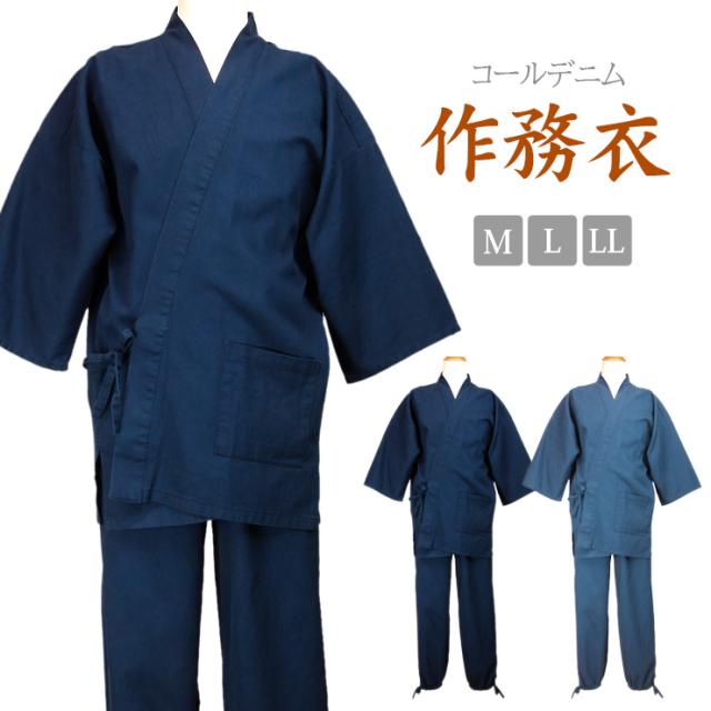 【大きいサイズあり】コールデニム 作務衣 メンズ 秋冬春 綿100% ネイビー ブルー M L LL 上下セット 和装 No.2704
