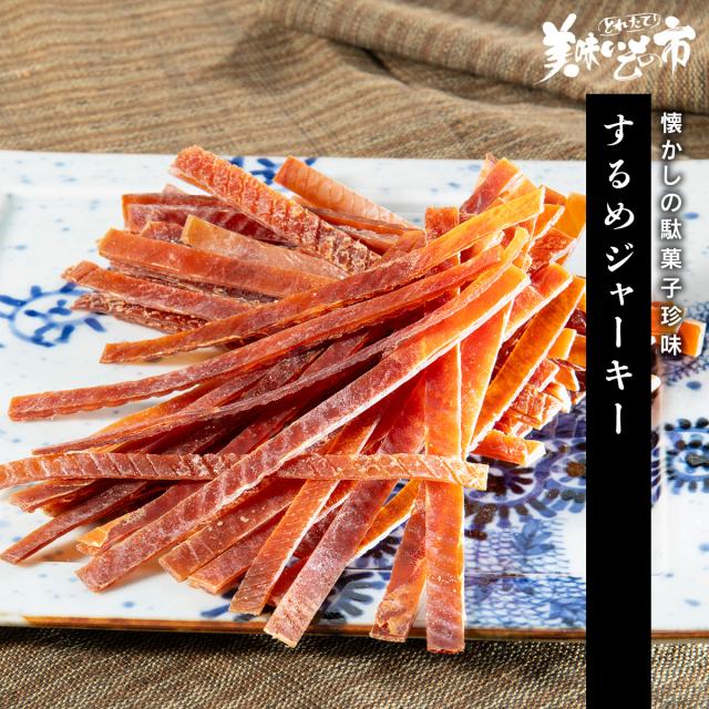 駄菓子珍味の定番、懐かしの味わい おしゃぶりスルメ。噛むほどイカの旨みが口いっぱいに広がります。
