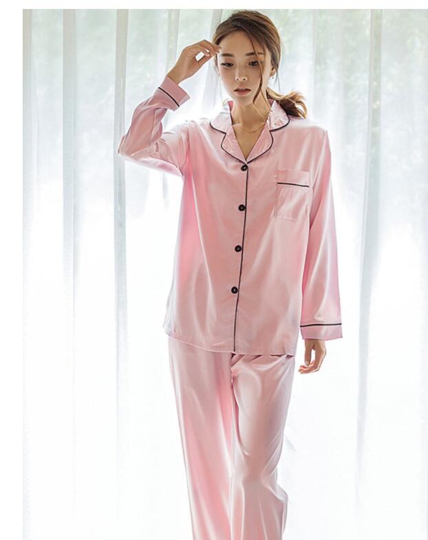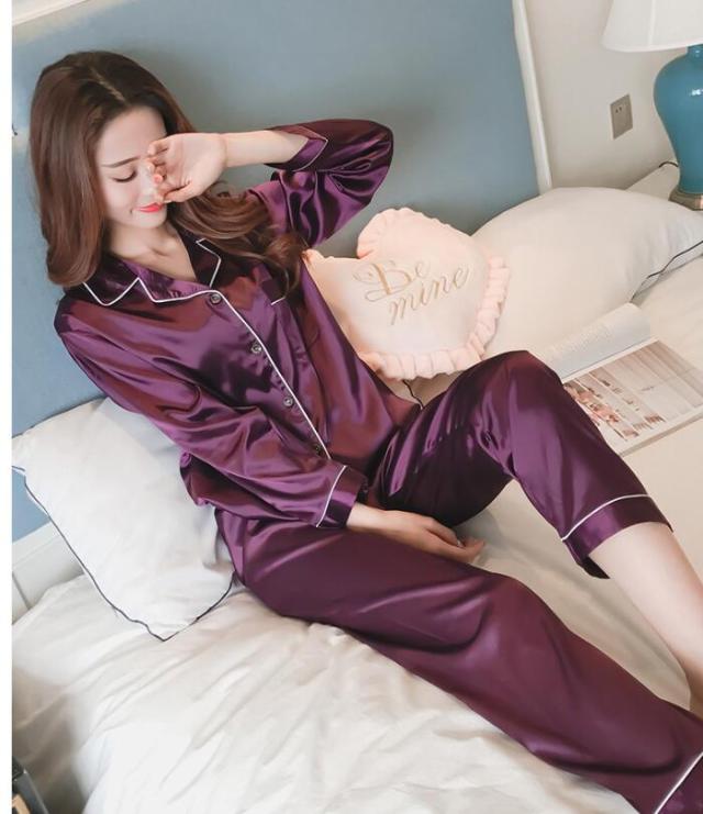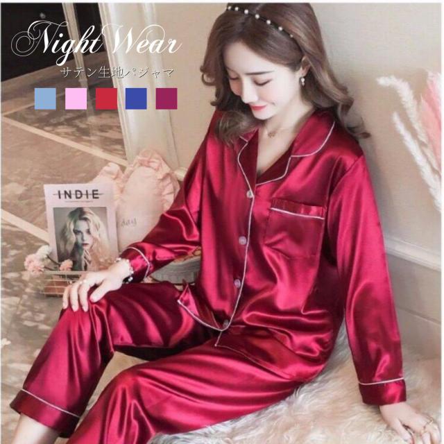 ナイトウェア ルームウェア パジャマ レディース サテン 上下セット 秋 冬 セットアップ 2点セット かわいい シルクタッチ 長袖 部屋着 お揃い 前開き ネグリジェ 入院 旅行 高級 セレブ 無地 セクシー大人 女性