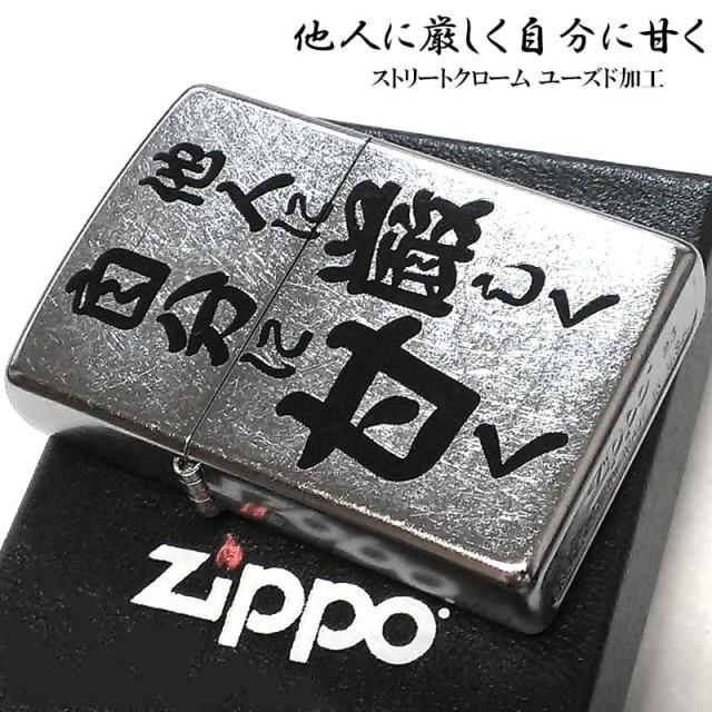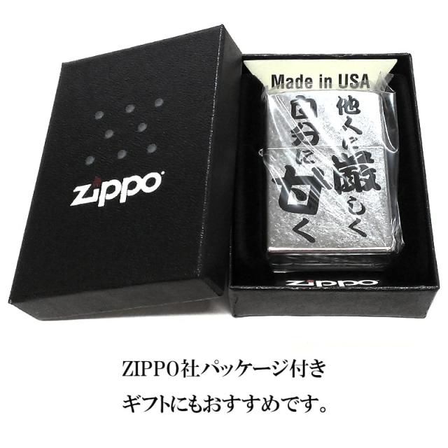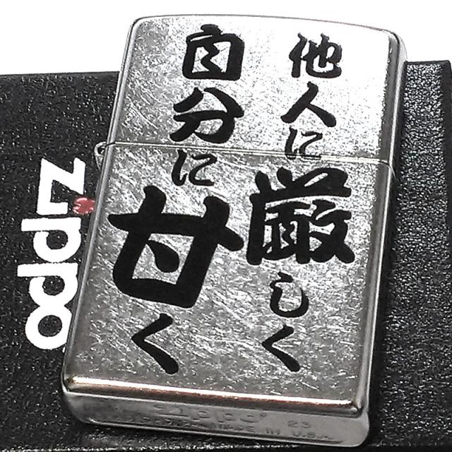 ZIPPO ライター シルバー 面白い 他人に厳しく自分に甘く ジッポ 和風 名言 かっこいい 日本語 ストリートクローム ユーズド加工