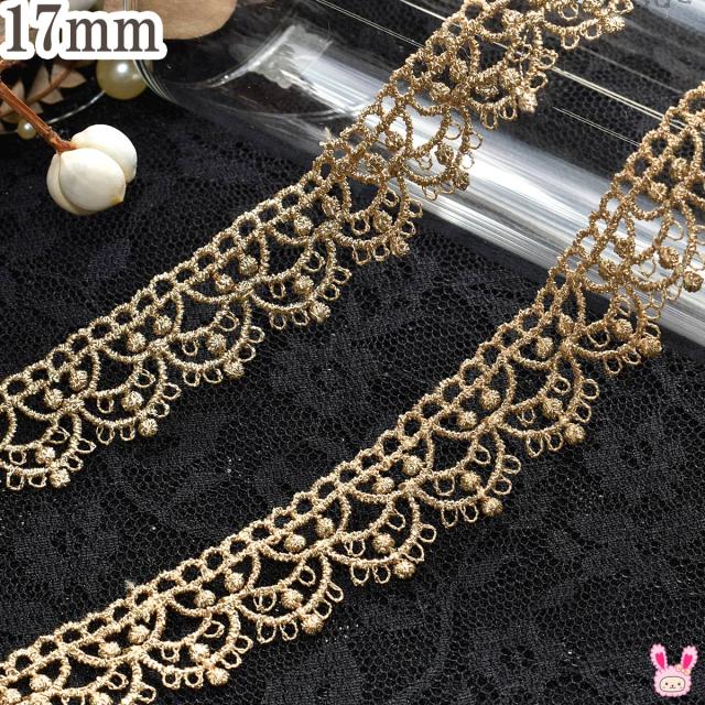 ゴールド水玉あしらいのフリル風レース 幅17mm 10cm単位 切り売り (60cm以上)