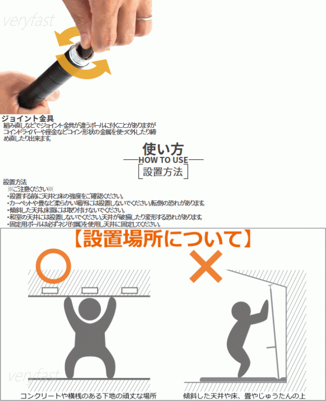 ※付属のボルトで天井と固定用ポールの接地面を固定して下さい。