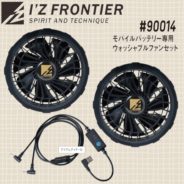 アイズフロンティア 90014 モバイルバッテリー専用ウォッシャブルファンセット 空調ウェア EFウェア IZ FRONTIER