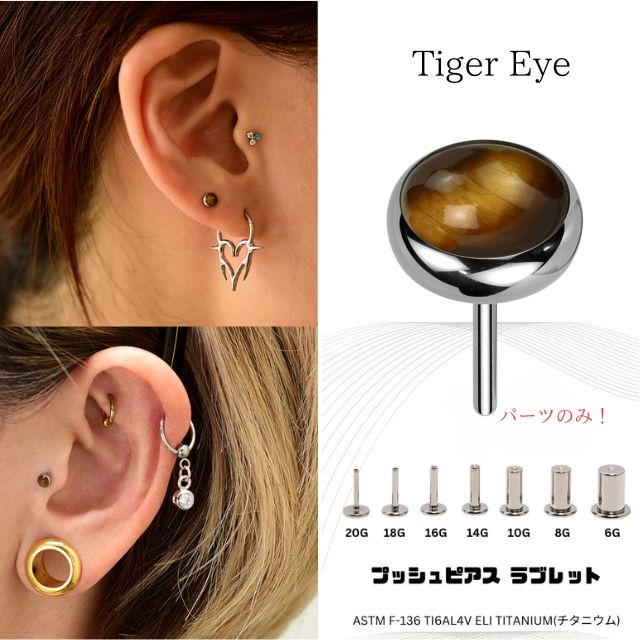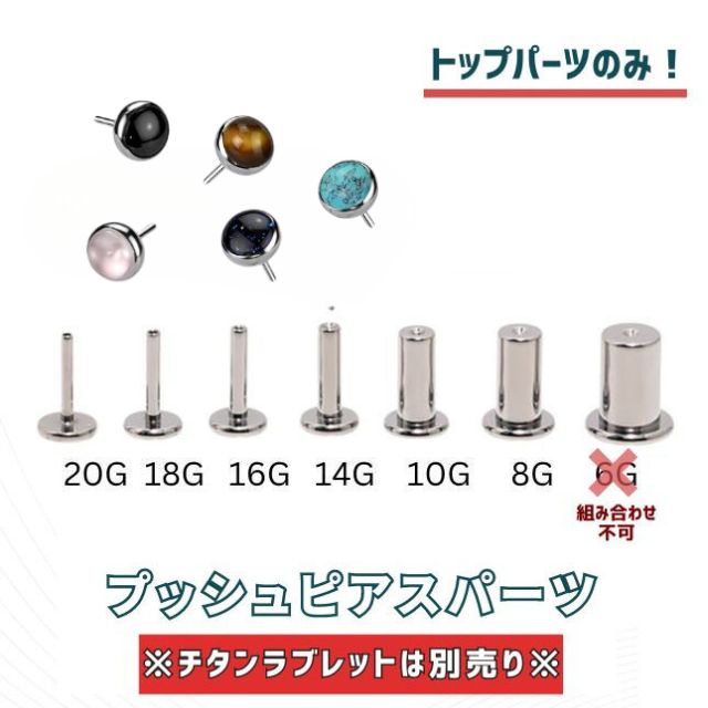 プッシュピアス パーツのみ 20G 18G 16G 14G 10G 8G 天然石ピアス 金属アレルギー対応 ステンレスピアス つけっぱなし 軟骨ピアス ボディピアス