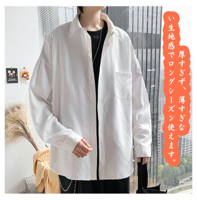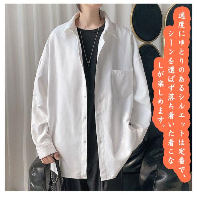 厚地 カジュアルシャツ メンズ 無地 おしゃれ ゆったり トップス 長袖シャツ ワイシャツ 大きいサイズ 秋服 白シャツ 長袖 長袖シャツ オーバーサイズ 開襟 長袖 アウター 春 夏 秋 通勤 通学