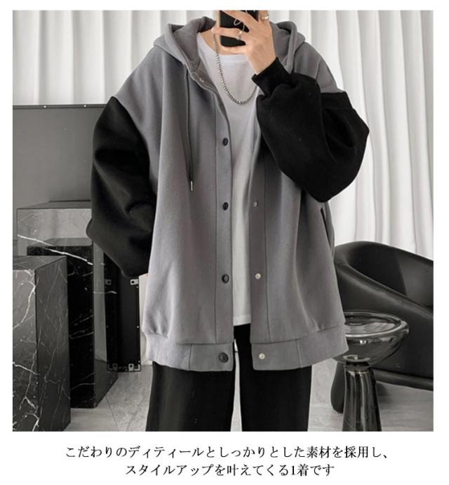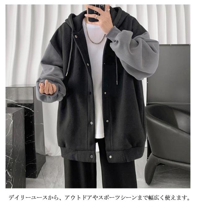 パーカー スウェット 秋服 オーバーサイズ トレーナー 長袖 トップス お洒落 フード付き 大きいサイズ 前開き オシャレ スポーツ ゆったり メンズ カジュアル 春秋服 パーカー アウトドア ストリート レジャー
