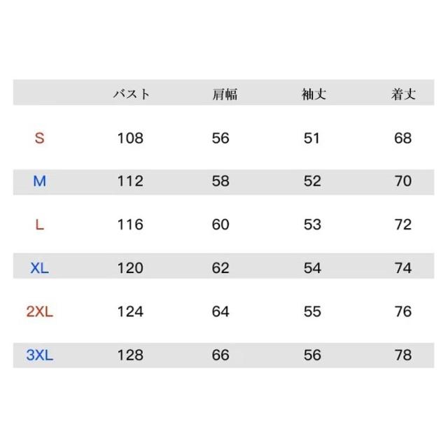 | サイズ | S M L XL 2XL 3XL |