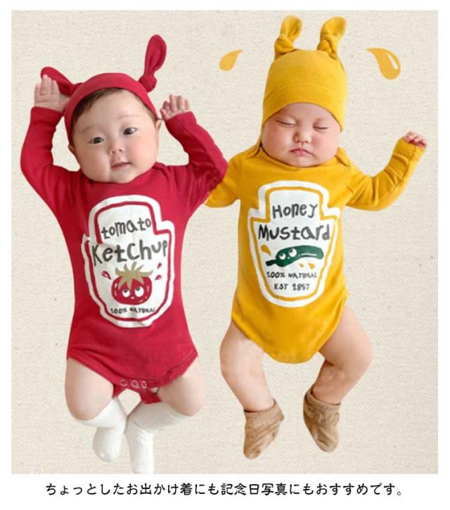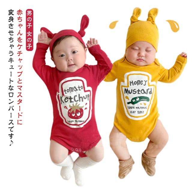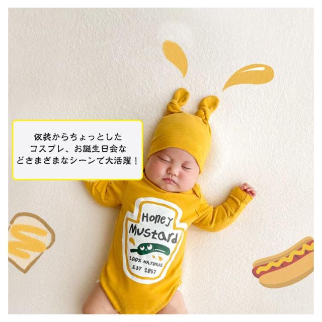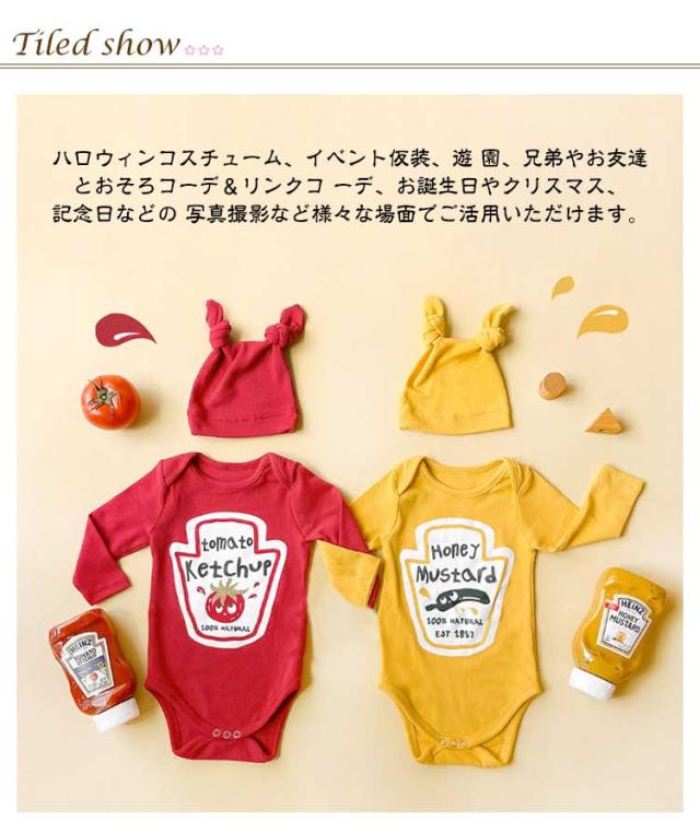 ケチャップ コスプレ かわいい ベビー服 80 衣装 マスタード ベビー 仮装 赤ちゃん 男の子 女の子 子供服 なりきり 変身 面白い 写真映え イベント 撮影 ロンパース コスチューム 60 70 ケチャップ 90 着ぐるみ 寝相アート
