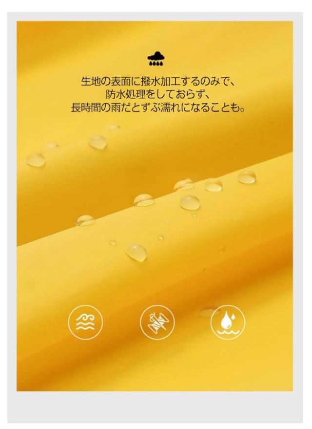 | 普段使いしても違和感がない!オシャレなレインコートが新登場! 生地の表面に撥水加工するのみで、防水処理をしておらず、長時間の雨だとずぶ濡れになることも。 ウエストを絞れるドロスト仕様。シルエットの変化が楽しめるウエストコード付き。 小雨で暑い時はジッパーを開けたり調節が簡単にできます。また被るタイプよりも、着脱がスムーズに。 通勤、通学、送り迎え、買い物、散歩、旅行、アウトドア、スポーツ観戦など色んな場面で利用可能! 雨上がりにそのまま着ていても違和感がない高いデザイン性のアイテムです。 | |