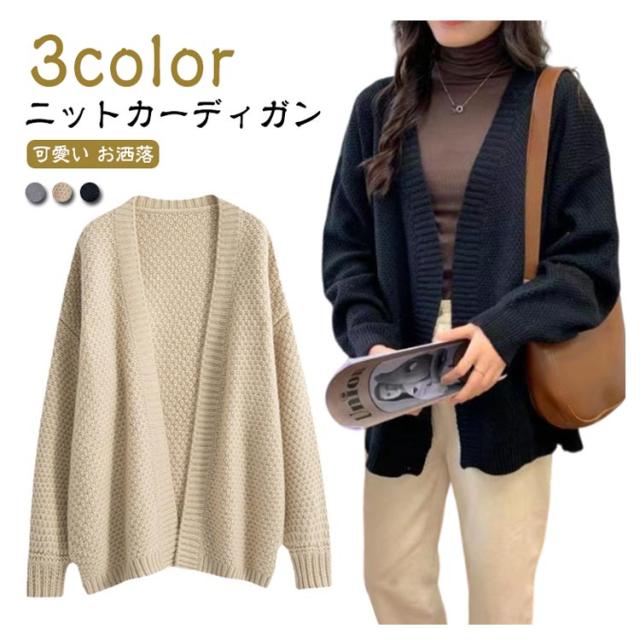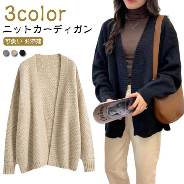 ニット トップス ニットカーディガン 大人可愛い シンプル 長袖 体型カバー カーディガン 着回し 重ね着 レディース レイヤード ニットカーデ お洒落 ブラック グレー ベージュ 黒 秋 冬 無地