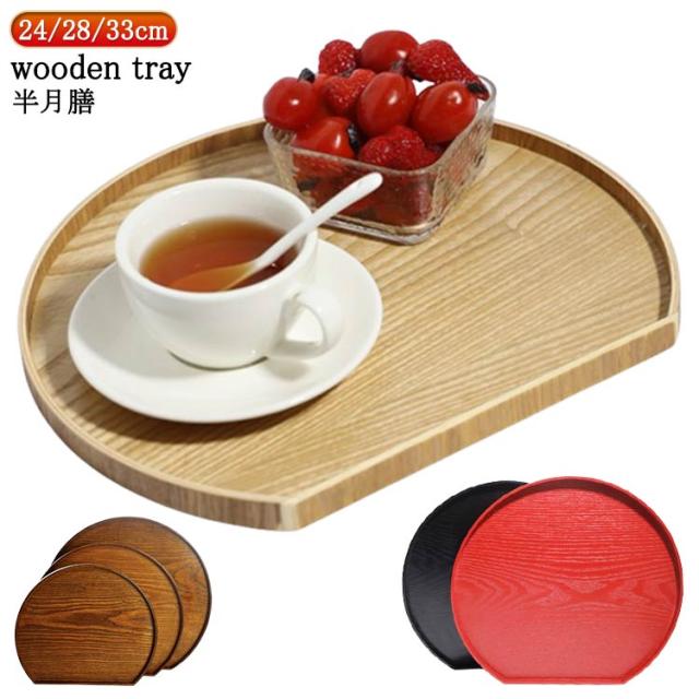 和室 お盆 洋風 配膳 ナチュラル 半月盆 おしゃれ ランチョンマット 木目調 木製 トレイ 半月膳 おぼん トレー 北欧風 ウッドトレイ 和風 お盆 お正月 お節 白木 来客用 膳 盆 キッチントレー おもてなし 24/28/33cm