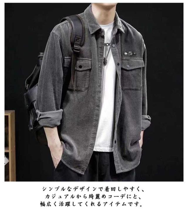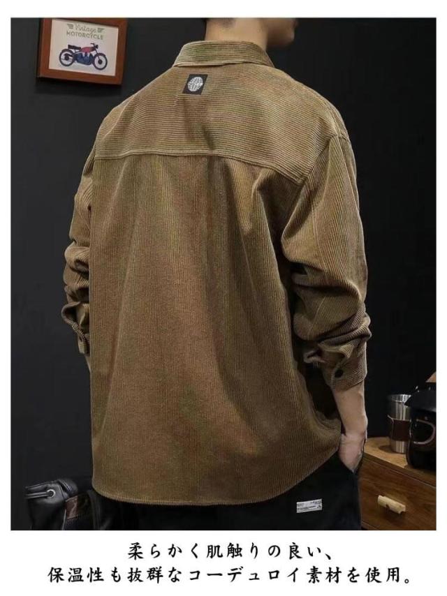コーデュロイ シャツ 秋服 カジュアルシャツ コーデュロイ 無地 メンズシャツ メンズ ビッグシルエット 長袖シャツ Yシャツ ゆったり オーバーサイズ トップス ボタンダウン 長袖 胸ポケット ビジネスシャツ 秋物 春服 おしゃれ メンズファッション 大きいサイズ