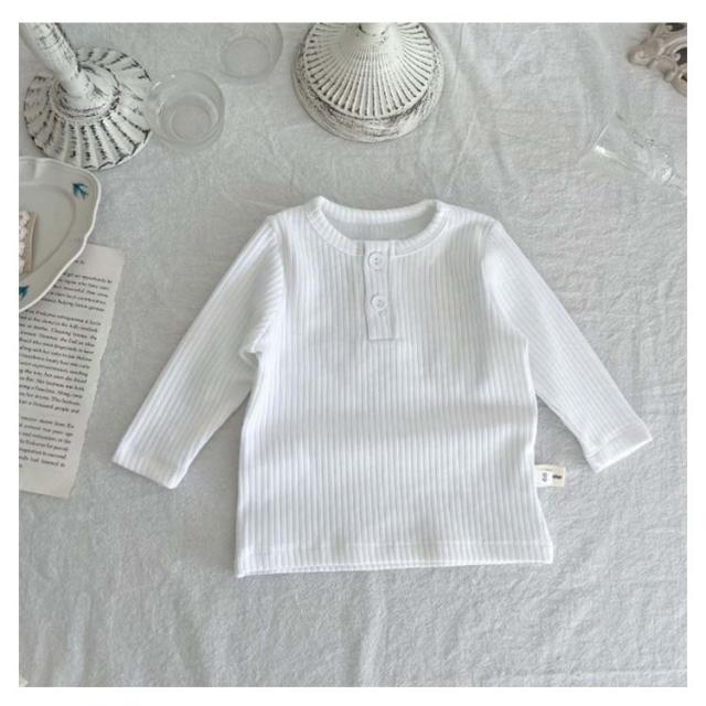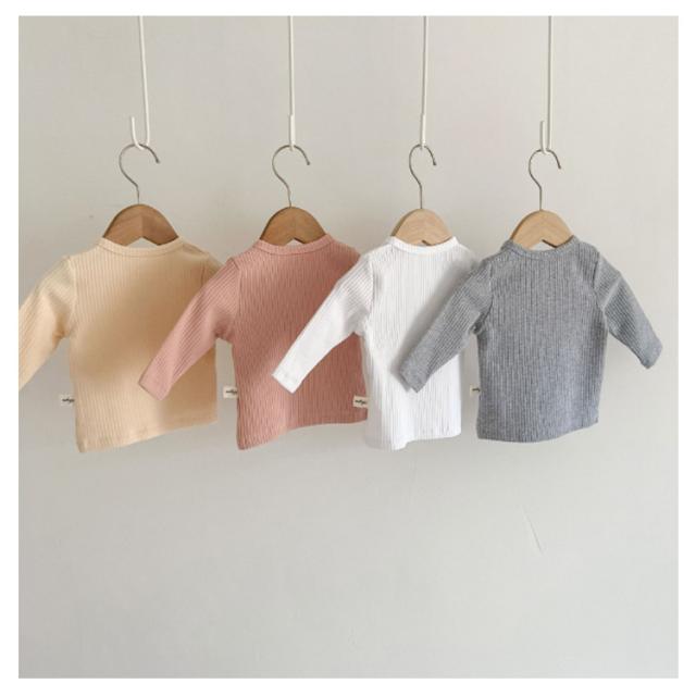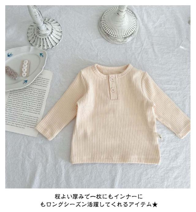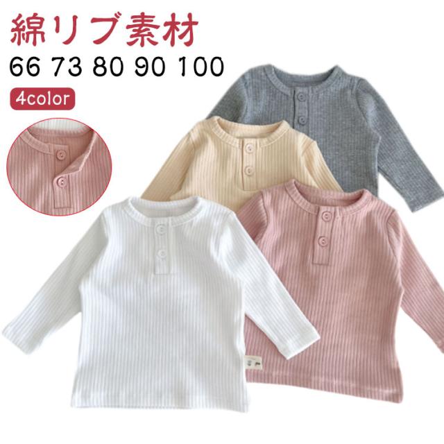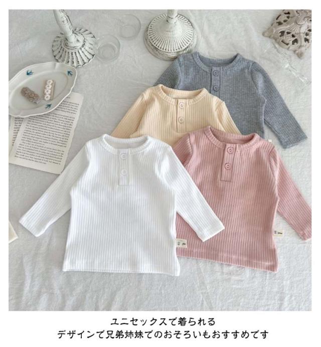 リブ キッズ おしゃれ 女の子 秋 赤ちゃん 男の子 春 無地 冬 カットソー 長袖 トップス ユニセックス かわいい 綿 可愛い コットン 子供 秋冬 シンプル ベビー 子供服 ベビー服 66 73 80 90 100cm Tシャツ くすみカラー