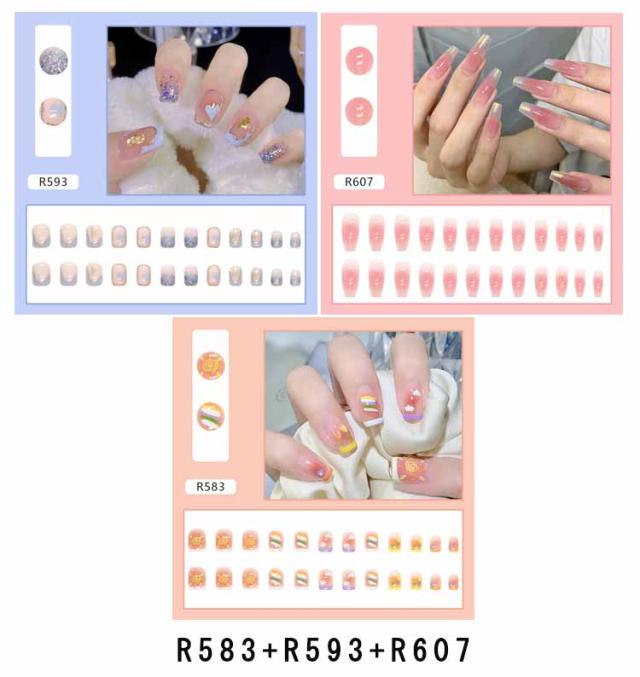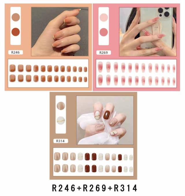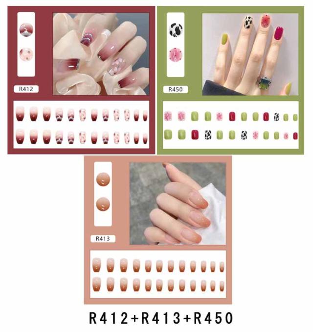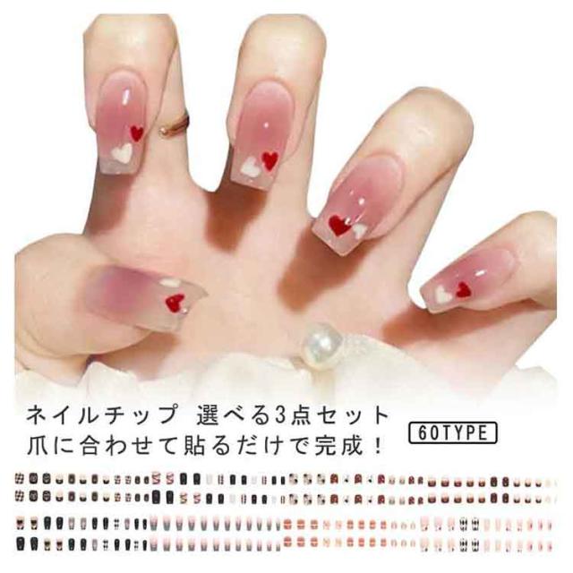 | ネイルチップ 選べる3点セット 爪に合わせて貼るだけで完成! 初心者はもちろん、自宅でDIYネイルや美容室サロンなどにもおすすめ。 | |