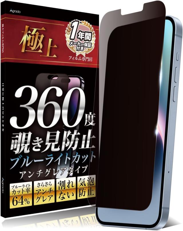 iPhone 14 / iPhone 13 Pro / iPhone 13 覗き見防止 ブルーライトカット 保護ガラスフィルム 取付かんたん 安心 日本製 360度 全方位 プライバシー スマホフィルム のぞき見防止 保証 アイフォン アイホン おまけ付き アンチグレア 防水ケース ポイント消化 除き見 おすすめ