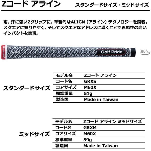 ゴルフプライド ウッド・アイアン用 グリップ 1本 Zコード アライン スタンダードサイズ・ミッドサイズ 【日本正規品】【メール便発送】【新品】GOLF PRIDE Z CODE ALIGN GRIP ゴルフ用品