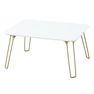 ●ニュアンスカラーの天板にゴールド調の脚が目を惹く折りたたみテーブル。