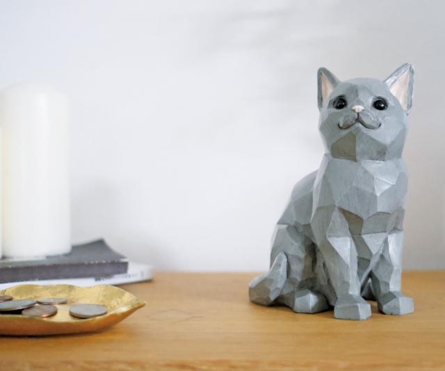 木彫り調のデザインがおしゃれな、樹脂製貯金箱です。北欧の置物を思わせるほっこりとした優しい佇まいが、インテリアに癒しのエッセンスをプラス。福を招く人気者のネコをモチーフにしたありがたい貯金箱で、インテリアを楽しみながら運気アップも期待できそうです。