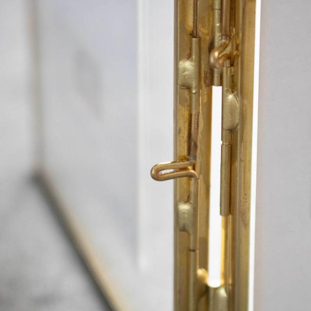 サイドのロックを外して開け閉めできます。2枚のガラスで写真を挟んで飾ってください。
